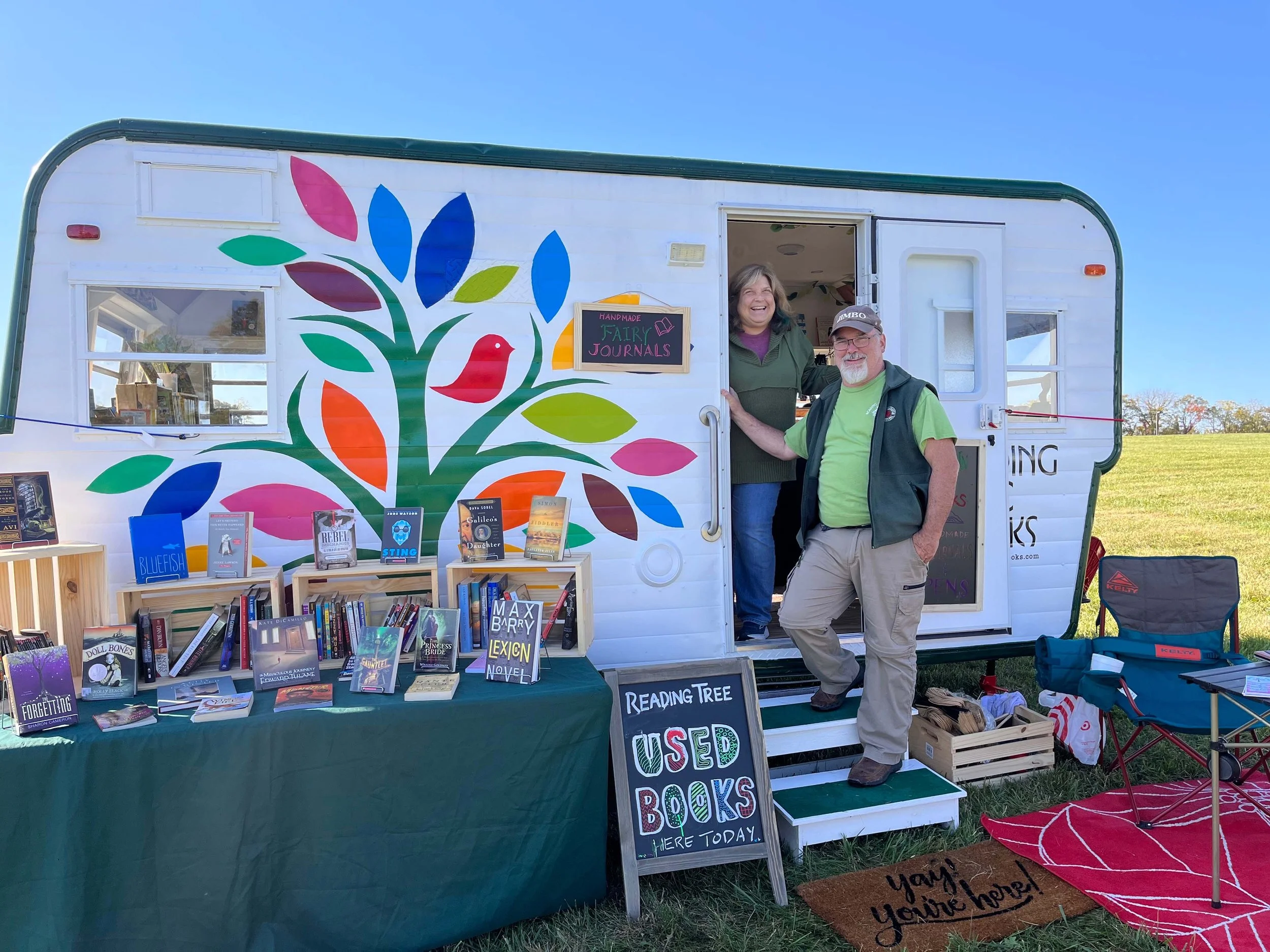 In November, 2021, my husband and I bought a vintage 1966 Nomad camper. It is adorable and I fell in love with it. We then set on the task of renovating it to serve as a bookmobile. The trailer is finished (well almost) and we have been having a blast taking it out to meet you all.